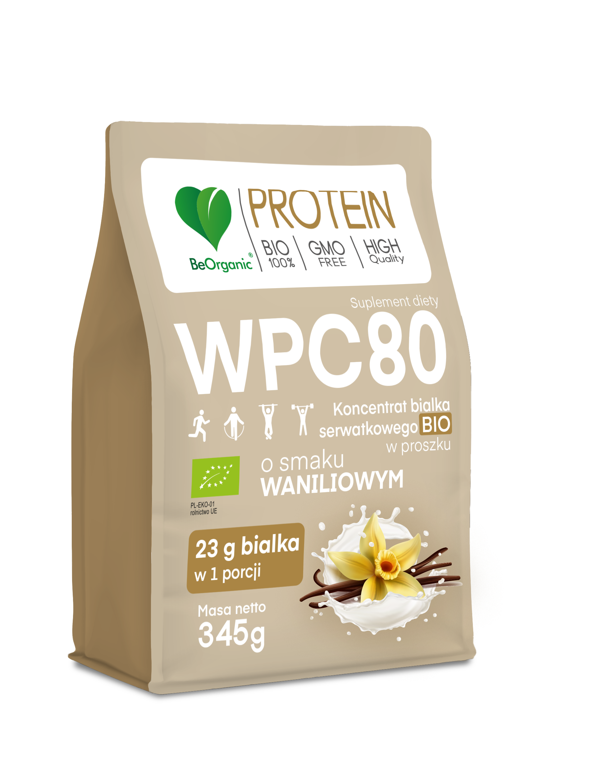 🥛 BeOrganic BIO WPC 80 WANILIA – ekologiczny koncentrat białka serwatkowego – 345 g