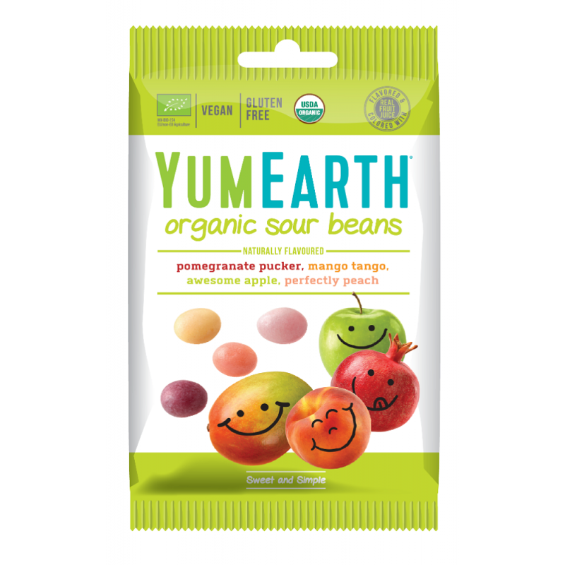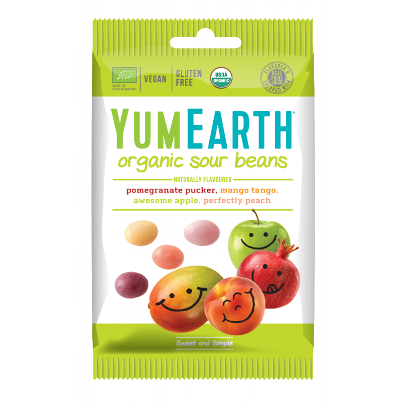 Cukierki kwaśne fasolki EKO (Sour Beans) 50g jest to mieszanka ekologicznych, bezglutenowych, miękkich draży owocowych, odpowiednia dla wegan. Produkt bez dodatku sztucznych aromatów, barwników, oleju palmowego oraz białego cukru.